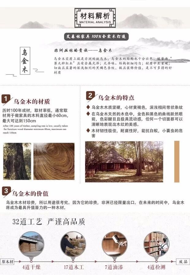 1、與其他實(shí)木家具相同,烏金木有著美麗的花紋,硬度也較好,但它也有致命的缺陷,含水率的變化使它容易變形和開裂,不能適應(yīng)過(guò)冷或過(guò)熱、干燥和潮濕的環(huán)境。